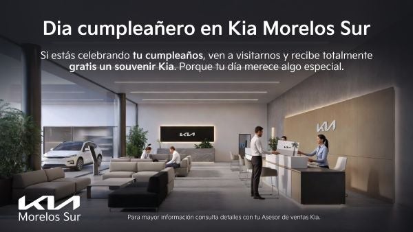 Celebra tu día especial con nosotros en Kia Morelos Sur. Si estás de cumpleaños, visítanos y recibe un souvenir Kia totalmente gratis, un detalle pensado para hacer tu celebración aún más especial. Porque tu día merece algo único, queremos consentirte y compartir la alegría contigo. Para mayor información, consulta detalles con tu asesor de ventas Kia.
