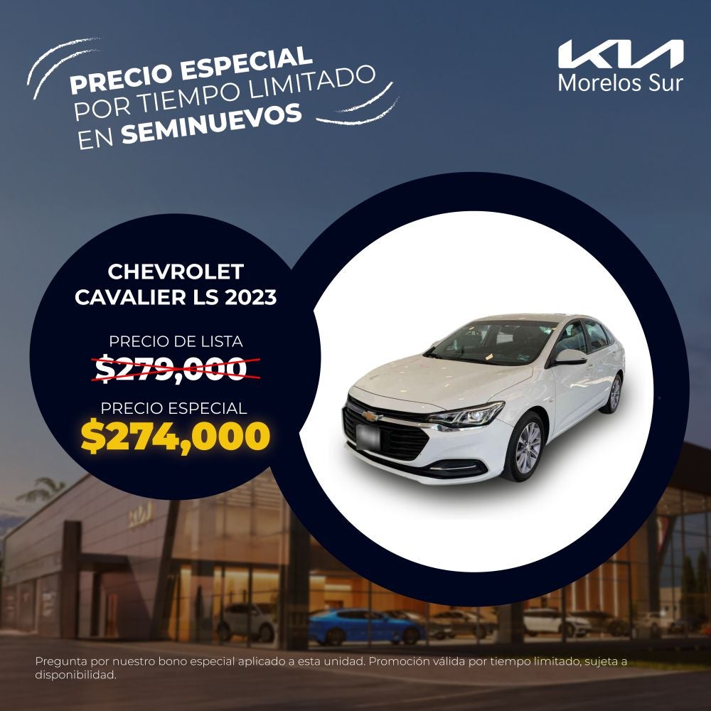 El precio mostrado ya incluye el bono aplicado. Válido únicamente para Chevrolet Cavalier LS modelo 2023 seminuevo